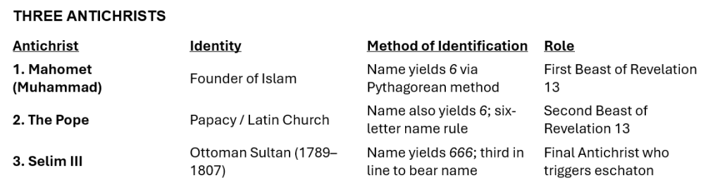 - The innovation lies in the identification of Selim III as a new and final Antichrist, justified through Pythagorean numerology and name analysis.⁶