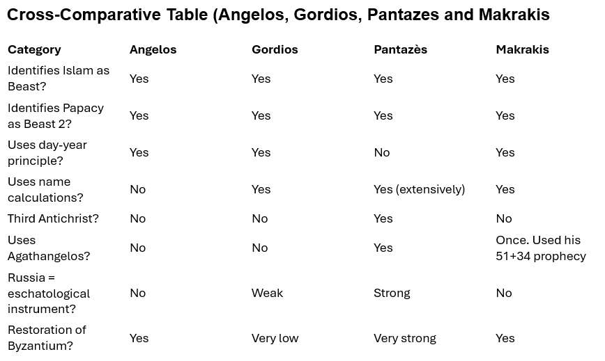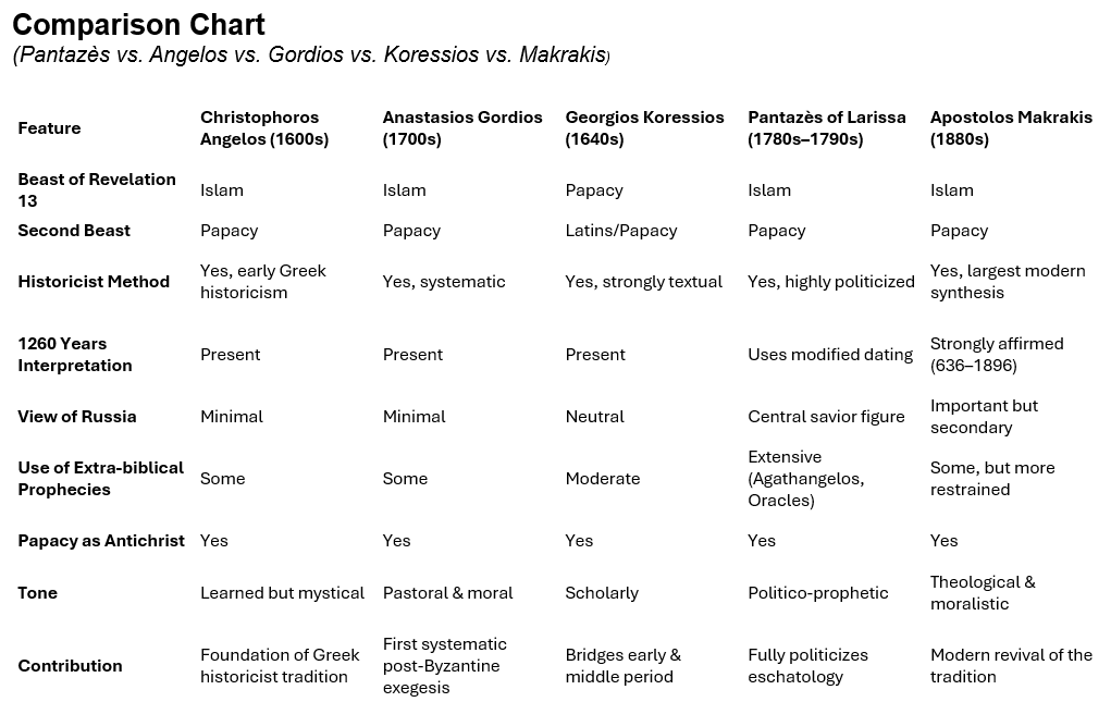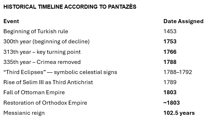 Though inaccurate, Pantazès’ chronology follows the historicist assumption that prophecy unfolds within real history—an approach later refined in Makrakis and Sotiropoulos.