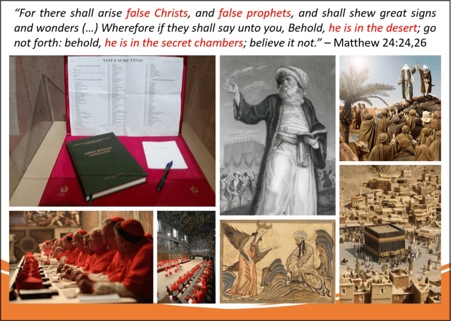 A false prophet advances a rival revelation external to the Church, while a false Christ substitutes himself for Christ’s headship within the Church’s visible structures. The desert signifies extra-covenantal prophetic religion, while the inner chambers signify concealed ecclesiastical authority.