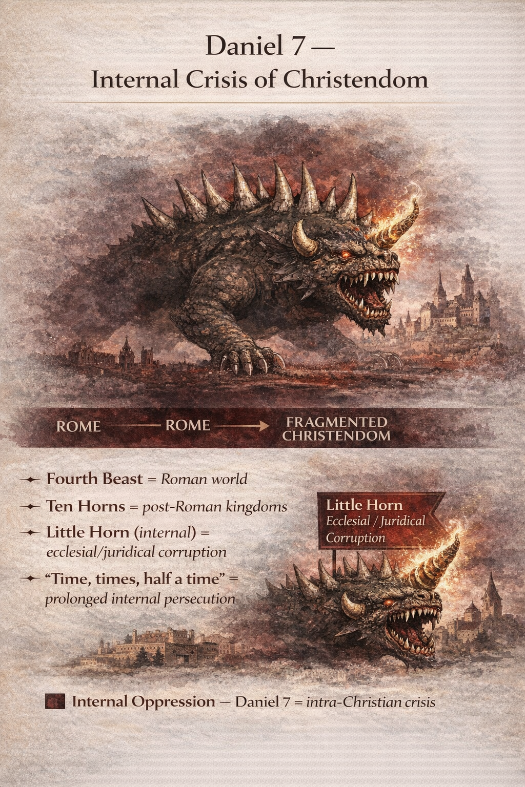 | Little Horn (Dan 7) | Internal ecclesial–juridical corruption | Intra-Christian crisis |
