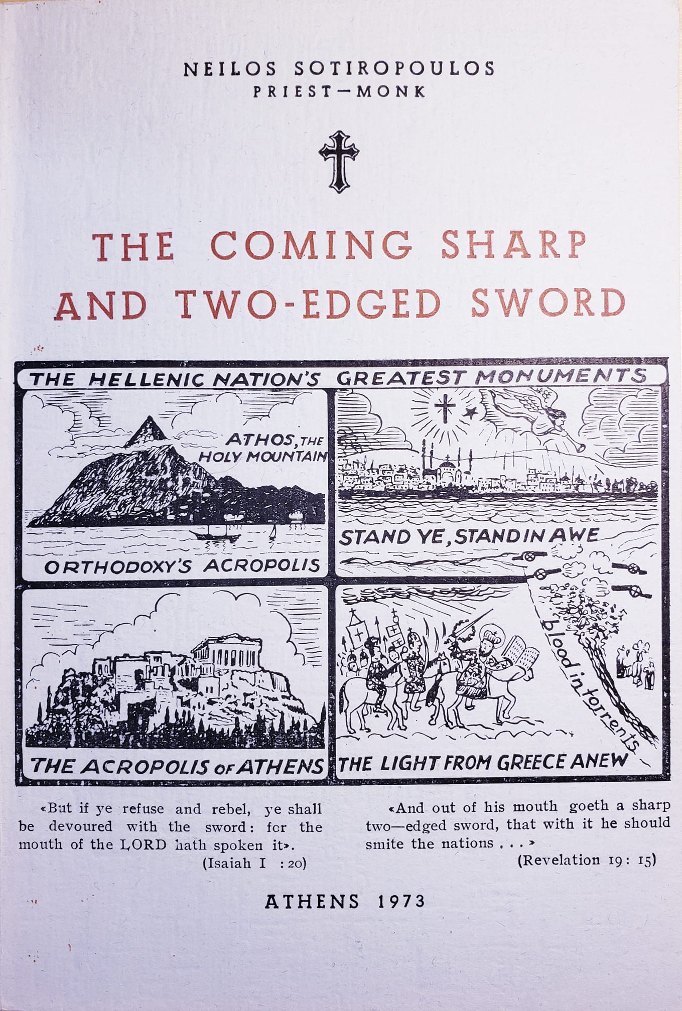 - Neilos Sotiropoulos, The Coming Sharp and Two-Edged Sword (Athens, 1973), Preface.