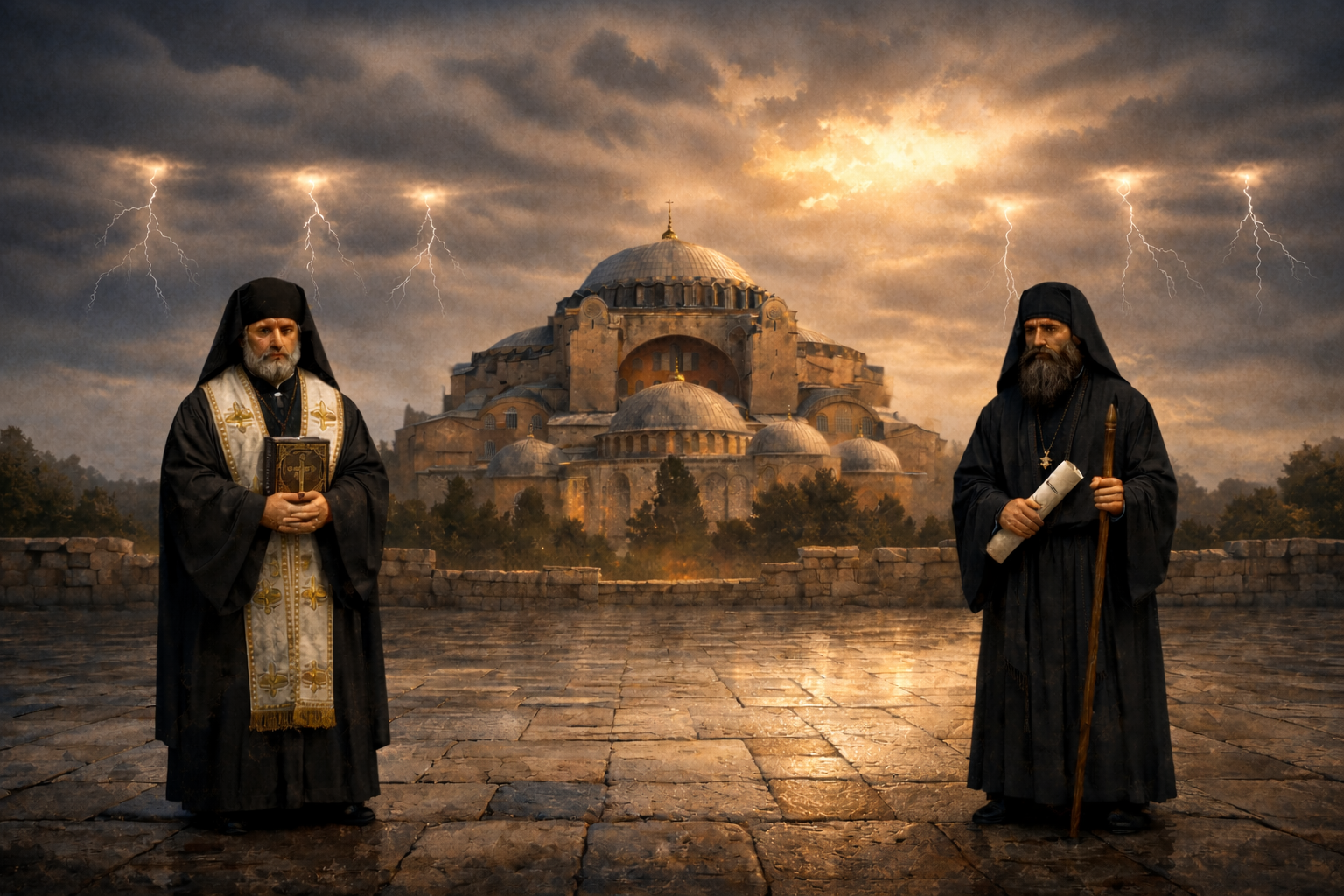 Read through the Orthodox historicist tradition—most explicitly articulated by Cyril (Kyrillos) Lavriotis of Patras and Apostolos Makrakis—these elements converge on a single historical locus: Constantinople, the Queen of Cities, and its Sophianic heart, Hagia Sophia.²