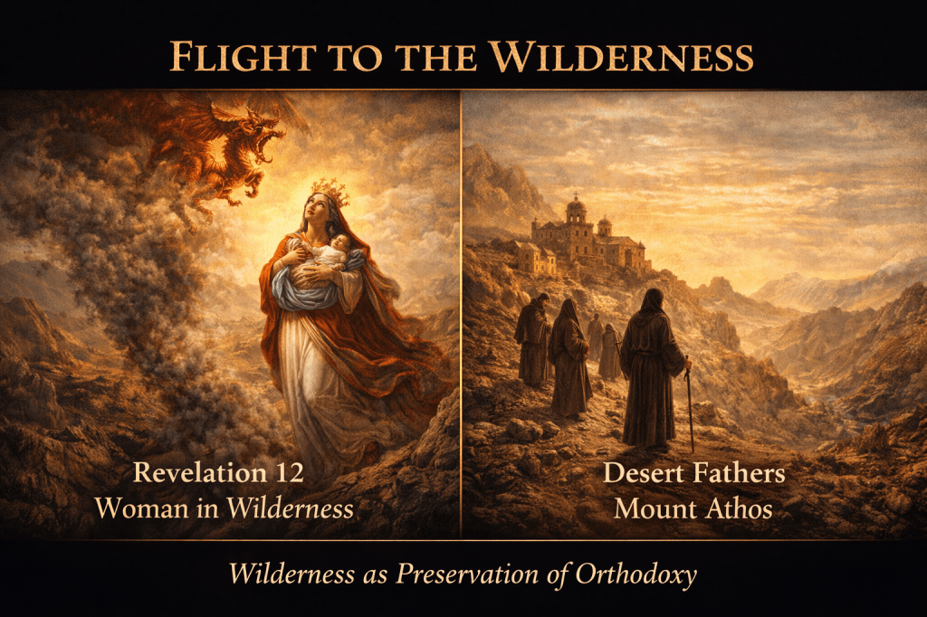 Makrakis interprets the torment of the Fifth Trumpet as the psychological and ecclesial distress generated by the Arian controversy. Yet the fourth century also witnessed a parallel and providential development: the rise of monasticism in Egypt with the Desert Fathers. Following Constantine, the Church entered an era of imperial favor in which prestige, political influence, and episcopal ambition introduced new spiritual dangers. In this context, the ascetical movement may be read typologically through Revelation 12: as the Woman “fled into the wilderness,” so too the faithful enacted a renewed flight into the Egyptian desert. This was not a rejection of the Church, but a preservation of her inner life. As the imperial Church contended publicly with Arianism in councils and courts, the desert became a sphere of purification, intercession, and doctrinal fidelity.