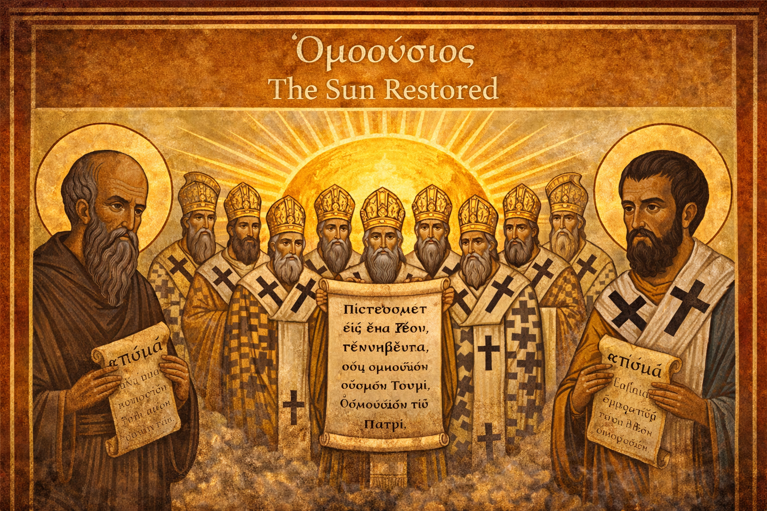 Yet the Apocalypse does not culminate in darkness. Through conciliar warfare, ascetical preservation, and doctrinal clarification, the Church emerges with greater precision in her confession: the Son is ὁμοούσιος with the Father, Light from Light, true God from true God. The very crisis that threatened destruction becomes the instrument of dogmatic refinement.