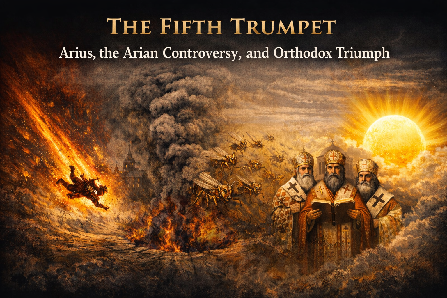 In this reading—articulated with particular force by Apostolos Makrakis—the Fifth Trumpet unveils the Church’s first great internal doctrinal crisis: the Arian controversy and the approximately one-and-a-half-century period of ecclesial torment culminating in the dogmatic clarifications of the first four Ecumenical Councils. Revelation 9 thus becomes not a prophecy of foreign invasion nor merely a symbol of imperial violence, but an apocalyptic disclosure of doctrinal purification, conciliar warfare, and ascetical renewal.