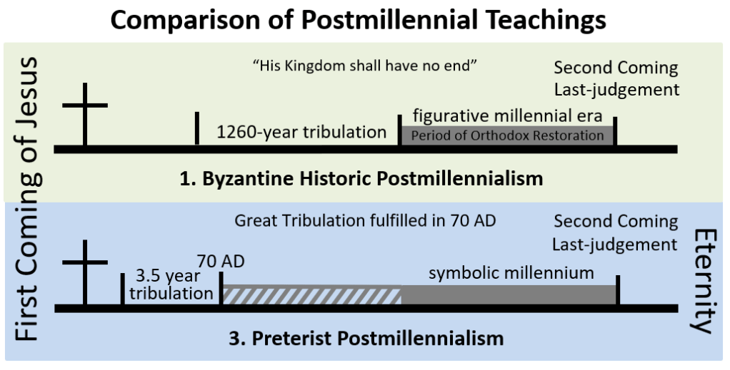 | Category | Preterist Postmillennialism | Byzantine Historic Postmillennialism |